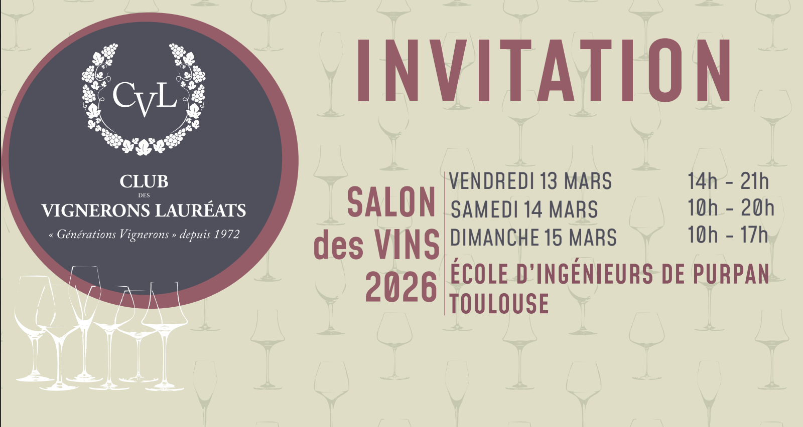 - Toulouse Salon du Club des Vignerons Lauréats du 13 au 15 Mars 2026